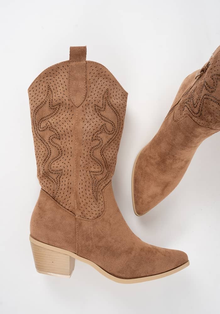 Γυναικείο Μποτακι Καμελ Suede κωδ:WS158