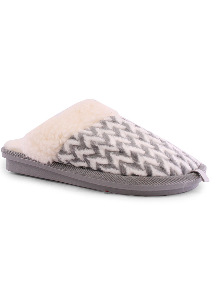 Γυναικεία παντόφλα χρώματος γκρι υφασμάτινη με εσωτερική γούνα.